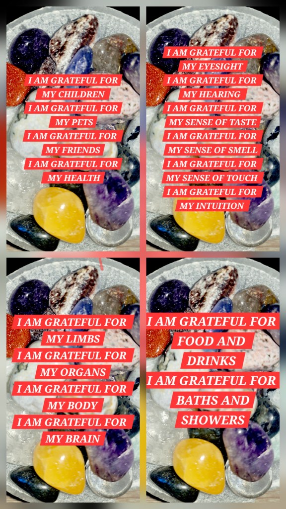 Creating a gratitude board is a good place to start. I have my gratitude board next to my vision board. I used my phone to write text onto pictures and printed those pictures on a free printing service. You could write your gratitude on post it notes and place them next to your vision board or have them as part of your board.